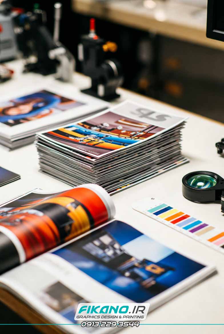 • انتخاب نوع کاغذ: جنس، گرماژ و بافت کاغذ باید متناسب با نوع کار انتخاب شود (مثلاً کاغذ گلاسه برای کاتالوگ و تحریر برای کتاب).