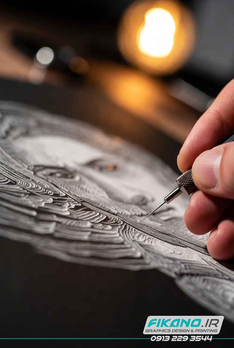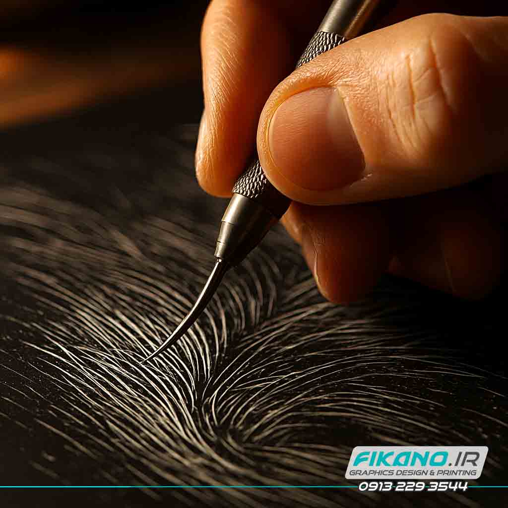 ۳. آغاز خراش: ابتدا از روشن‌ترین نواحی شروع کن و به‌تدریج به سمت سایه‌ها برو.