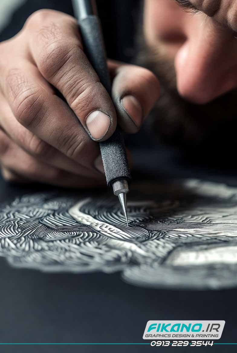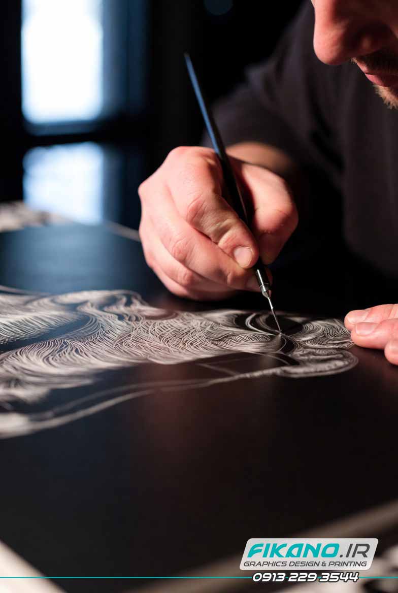 ۷. استفاده از نور مایل هنگام کار: باعث میشود درخشش خطوط بهتر دیده شود و عمق بصری اثر بیشتر گردد.