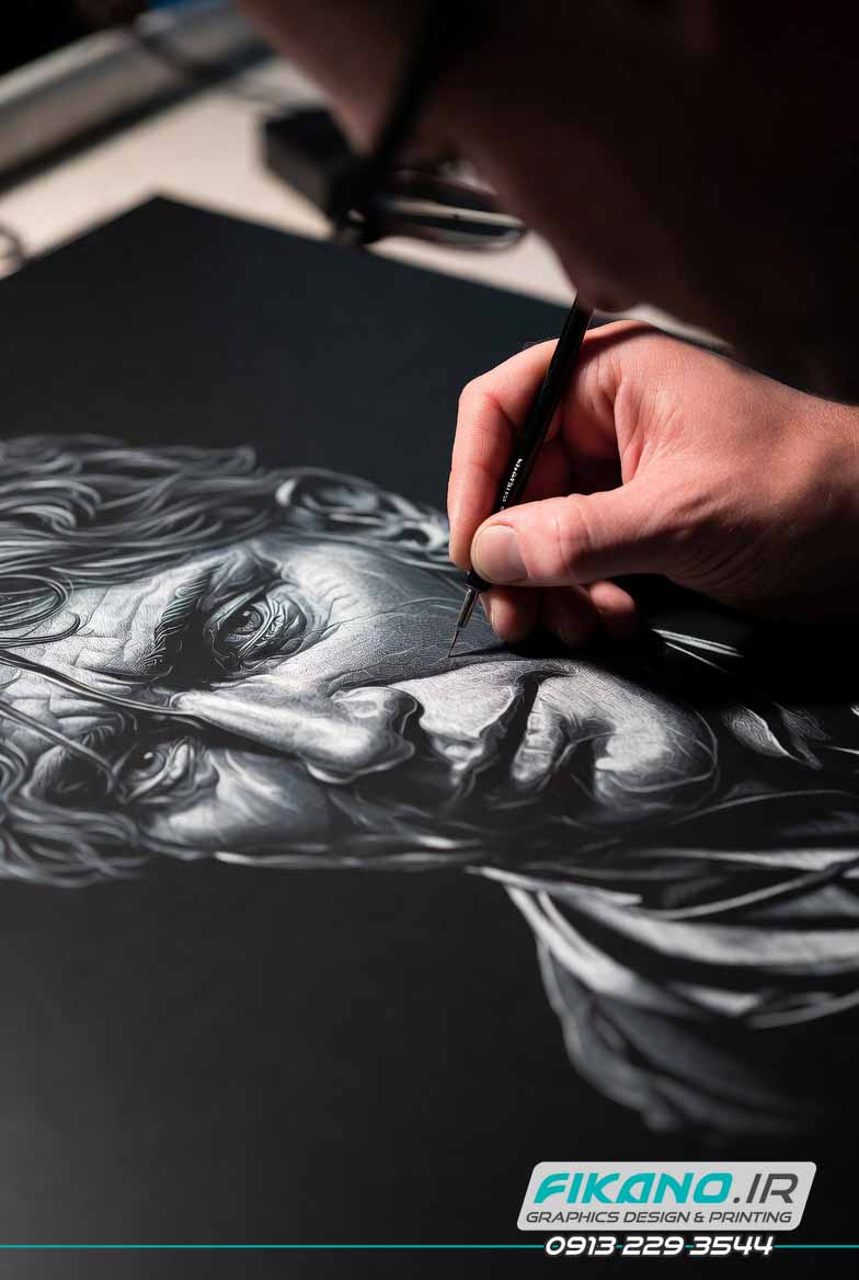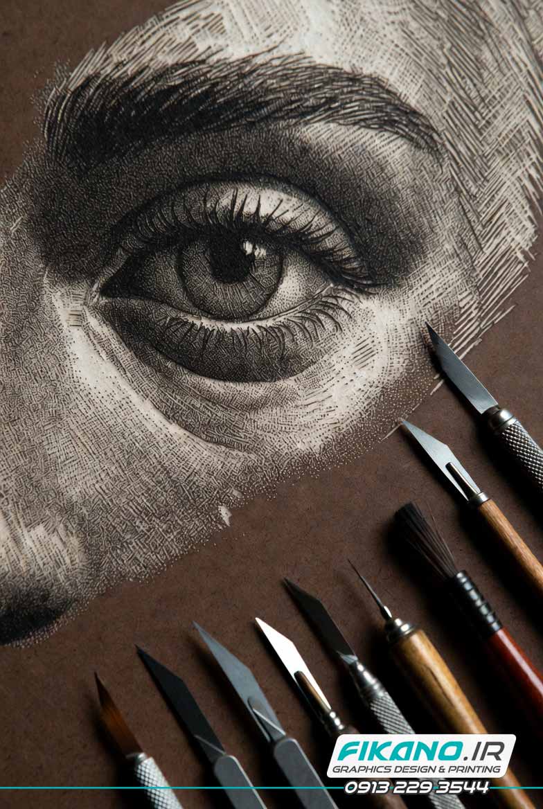 در طراحی پرتره، مهمترین عامل طبیعیبودن اثر، کنترل در نواحی چشم و دهان است؛ هر خراش اشتباه میتواند حالت چهره را تغییر دهد.