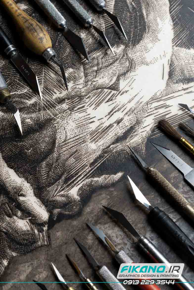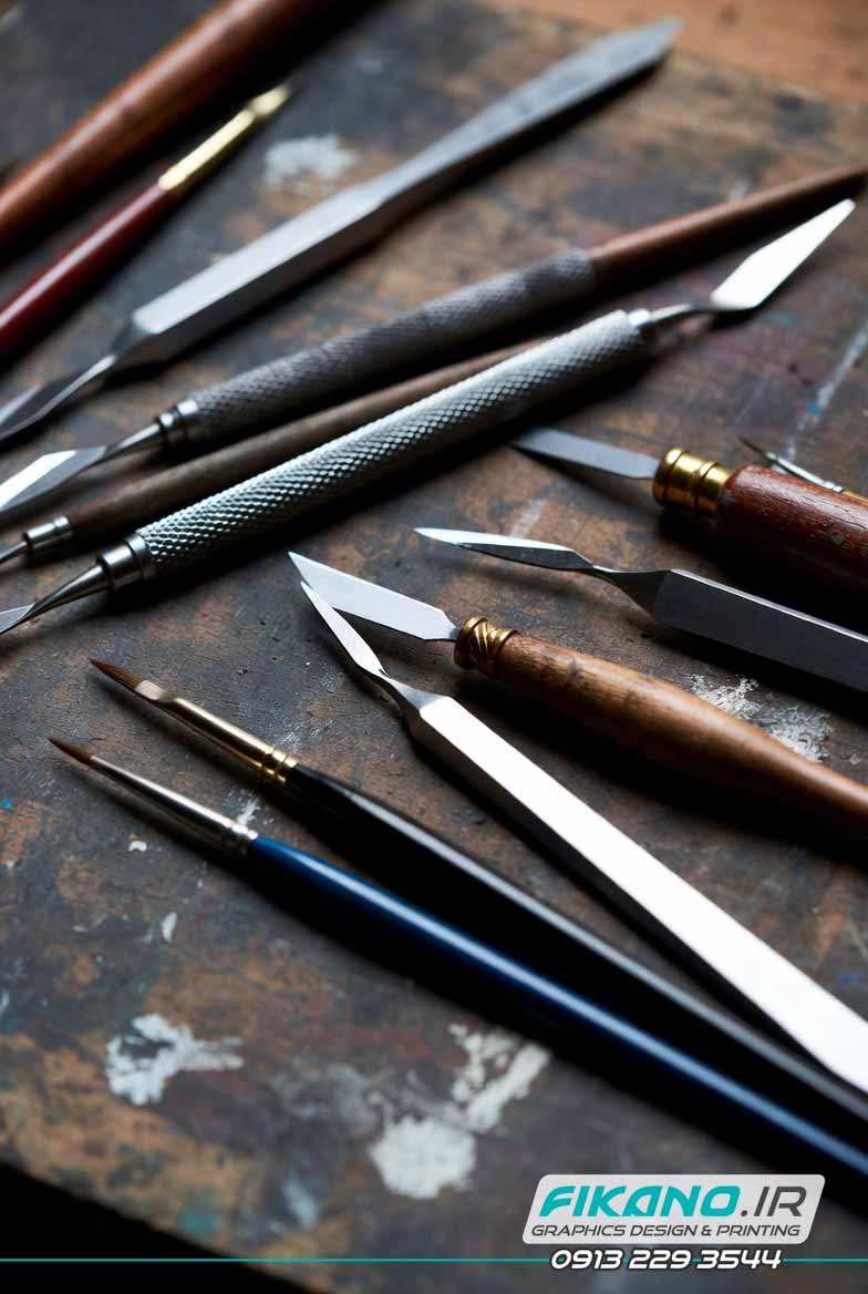 ۲. از ابزار مناسب استفاده کن: ابزارهای مختلف مانند تیغ نوکگرد، سوزن فلزی و قلم خراش هرکدام برای نوع خاصی از بافت مناسباند.