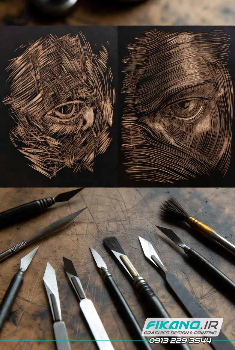 در تکنیک اسکراچ بُرد، ابزار نقشی اساسی در کنترل کیفیت خطوط، تنالیته و جزئیات نهایی اثر دارد. انتخاب درست ابزار و آشنایی با عملکرد آنها، تفاوت میان یک اثر آماتور و یک کار حرفهای را رقم میزند. هر ابزار در این هنر زبان خاص خود را دارد و با تغییر زاویه یا فشار، نتایج متفاوتی روی سطح ظاهر میشود.