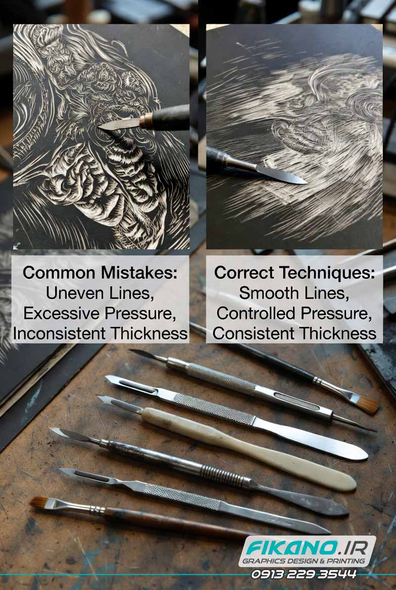 ۲. خراش تصادفی را نادیده نگیر: این خطاها با فیکساتیو یا جوهر مشکی قابل اصلاحاند، اما اگر زیاد تکرار شوند، اثر را مصنوعی جلوه میدهند.